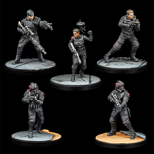 Iden Versio dirige l’Escouade Inferno, fille du célèbre amiral Garrick Versio, qui les a créés pour lutter contre les menaces les plus insidieuses de l’Empire, y compris celles venant de l’intérieur. Iden a eu la liberté d’utiliser des tactiques non conventionnelles et d’ignorer les protocoles. Le second de l’escouade est Gideon Hask, un ancien pilote très compétent, connu pour sa loyauté fanatique envers l’Empire. Un autre agent vétéran qui a prouvé sa valeur est Del Meeko, un soldat polyvalent capable d’assumer les rôles de tireur d’élite, éclaireur, opérateur ou tout autre rôle exigé par Iden. Tous les soldats de l’escouade sont membres des Forces Spéciales Impériales et ont suivi une formation poussée.